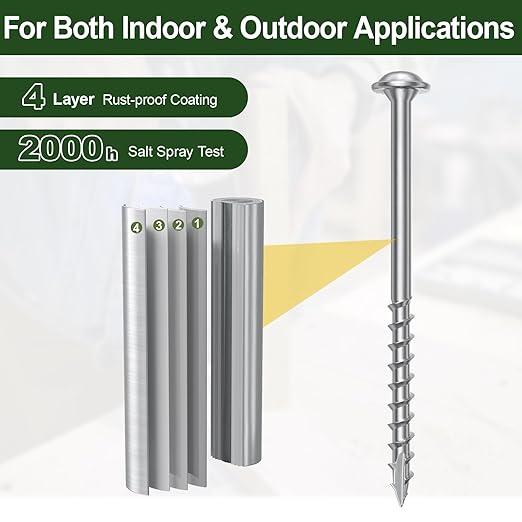 - 【Indoor & Outdoor Durability】: Engineered with a 4-layer rust-proof coating, our pocket hole screw withstand 2000+ hours of salt spray testing. Ideal for demanding applications in any environment - from interior projects to harsh outdoor conditions.