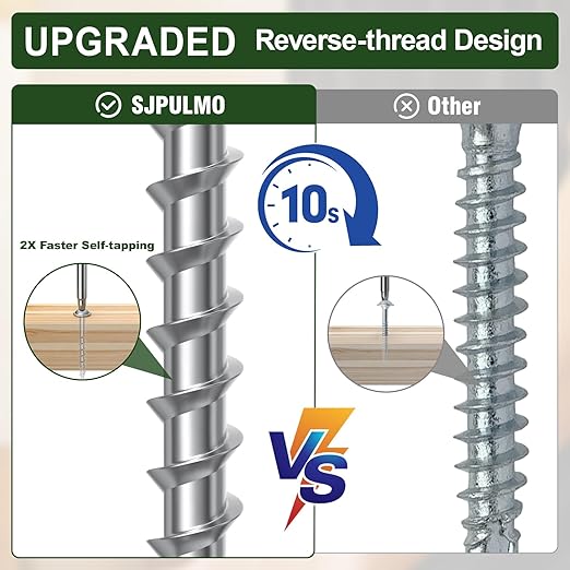 - 【Reverse-Thread Innovation】: Our pocket hole screws feature a unique reverse-thread design that doubles the drilling speed compared to standard threading. This significantly boosts work efficiency, especially when handling multiple screw installations—saving you substantial time on every project