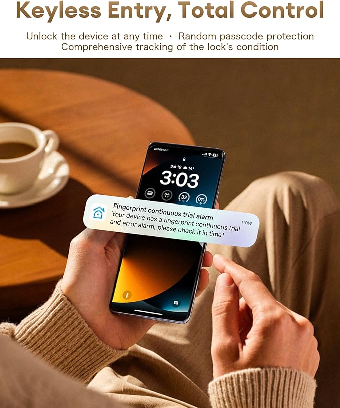 - Multi-Layer Security Protections: This smart door lock has full security features: auto-locking, intrusion alarm, privacy mode. Dual unlocking (e.g., fingerprint + password) boosts safety for front doors. 5 failed attempts lock the method for 5 mins; it also has low-battery reminders, USB Type-C emergency power, and mechanical keys