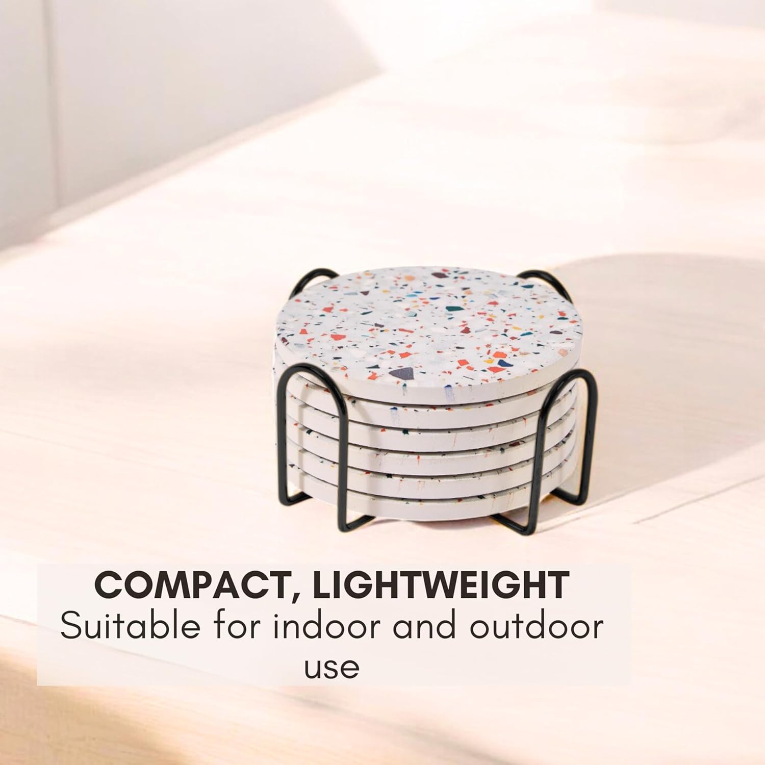 - Fast-Absorbing Ceramic Top: Crafted from absorbent stone, these marble coasters for drinks soak up moisture quickly to prevent water rings and stains. Whether you’re sipping hot coffee or iced cocktails, each absorbent coaster keeps your tabletops dry and spotless.