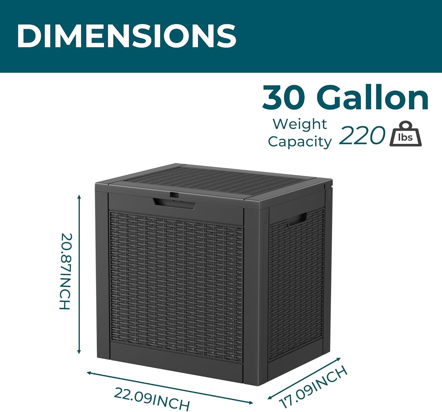 - Dual Indoor-Outdoor Functionality: This resin deck box transitions seamlessly between patio and indoor spaces, storing cushions, tools, or accessories while doubling as side tables or seating.