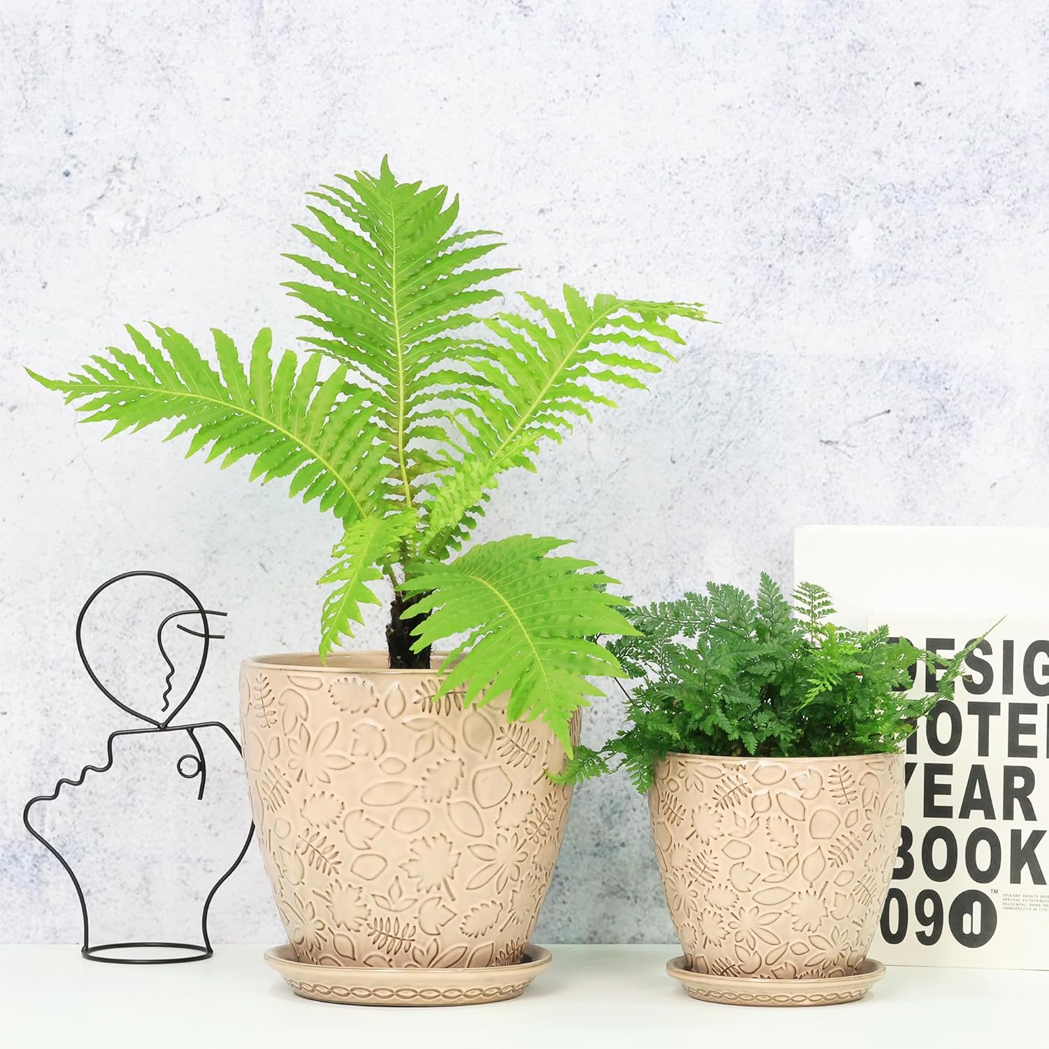 - Thoughtful Gift for Plant Enthusiasts:The Ceramic Plant pots with Drainage Hole and Saucer for plants indoor Designed with charming leaf , flower, and plant motifs, these planters make excellent gifts for plant lovers. Suitable for occasions such as birthdays, anniversaries, housewarmings, Thanksgiving, Christmas, and more.