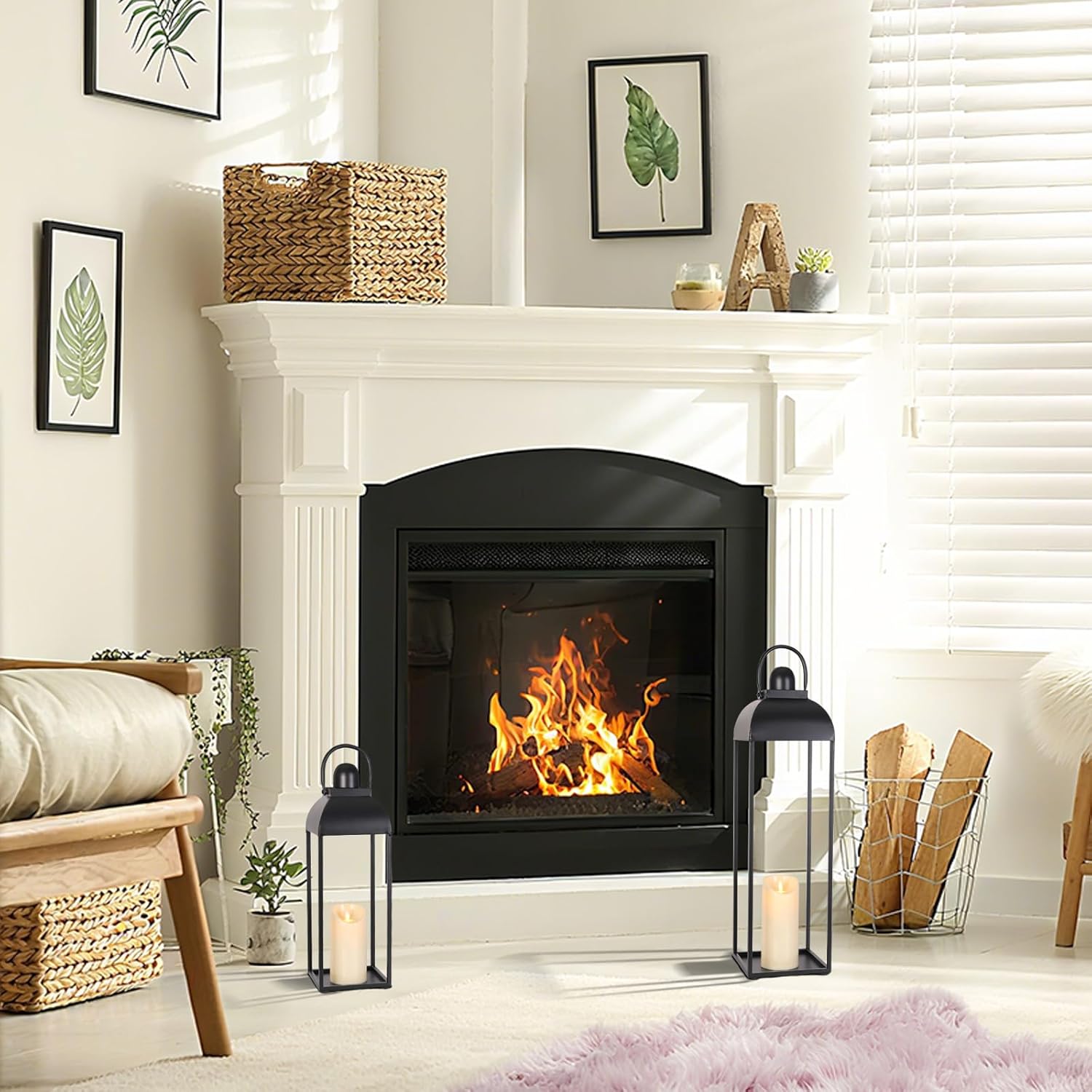 25'' 19'' Lanterns Decorative Outdoor Indoor, Black Metal Outdoor Candle Lanterns, Set of 2 Modern Farmhouse Decorative Lantern for Fireplace, Patio, Porch, Floor, Halloween Lantern (No Glass)