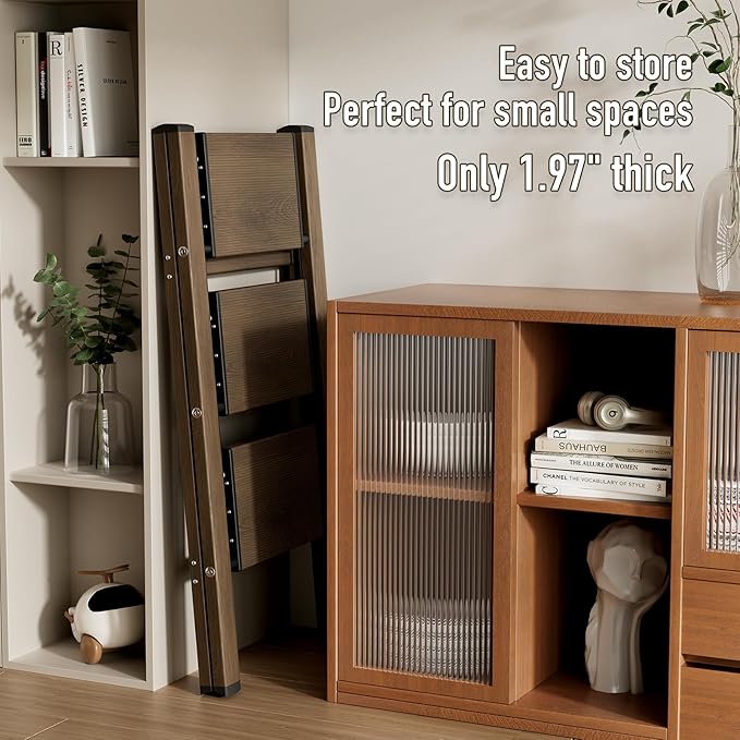 3 Step Ladder,Aluminum Folding Step Stool for Adults,Step Ladder with Wide Anti-Slip Pedal,330 lbs Capacity for Home,Office,Kitchen,Library(Walnut)