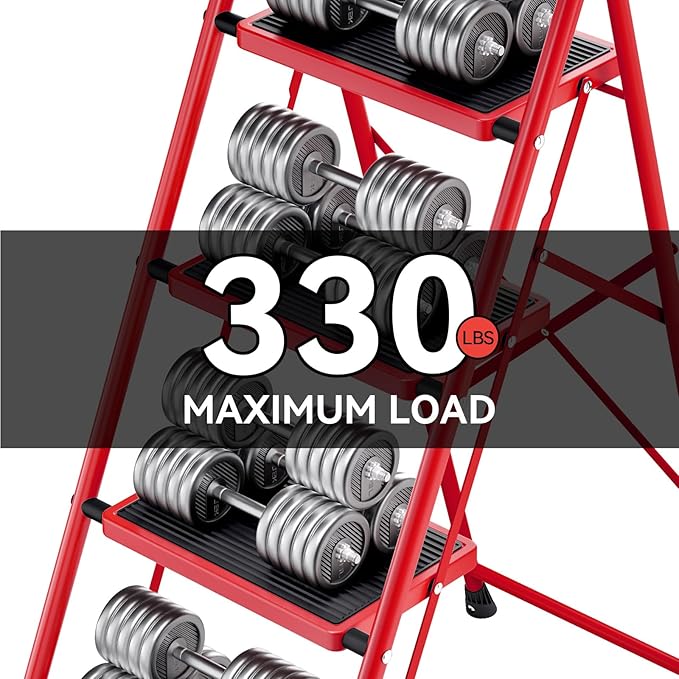 - Safety and stability upgrade: the step ladder is made of durable steel material and an oversized upper platform that provides foot support from heel to toe, eliminates foot pain and fatigue, and uses a safety lock design to attach the ladder. When you use it, simply press the top pedal down until the safety locking mechanism automatically locks into place.