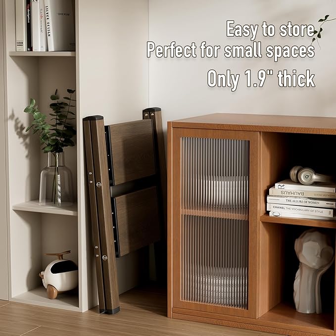 2 Step Ladder,Aluminum Folding Step Stool for Adults,Step Ladder with Wide Anti-Slip Pedal,330 lbs Capacity for Home,Office,Kitchen,Library(Walnut)