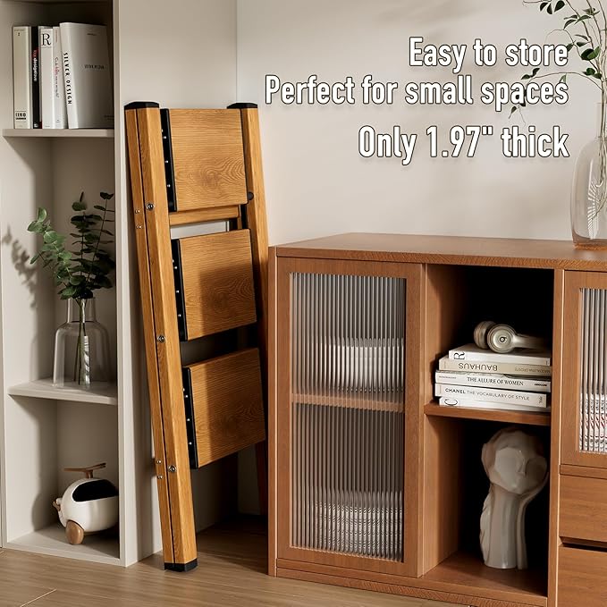 - 【Lightweight & No Assembly Required】 Net Weight: 7.9 lbs.Folded Thickness: Only 1.9 inches.This compact design makes it easy to carry and store, fitting into any corner of your home. Fully assembled and can be quickly opened and folded in seconds. The distance between each step is 9.4 inches.