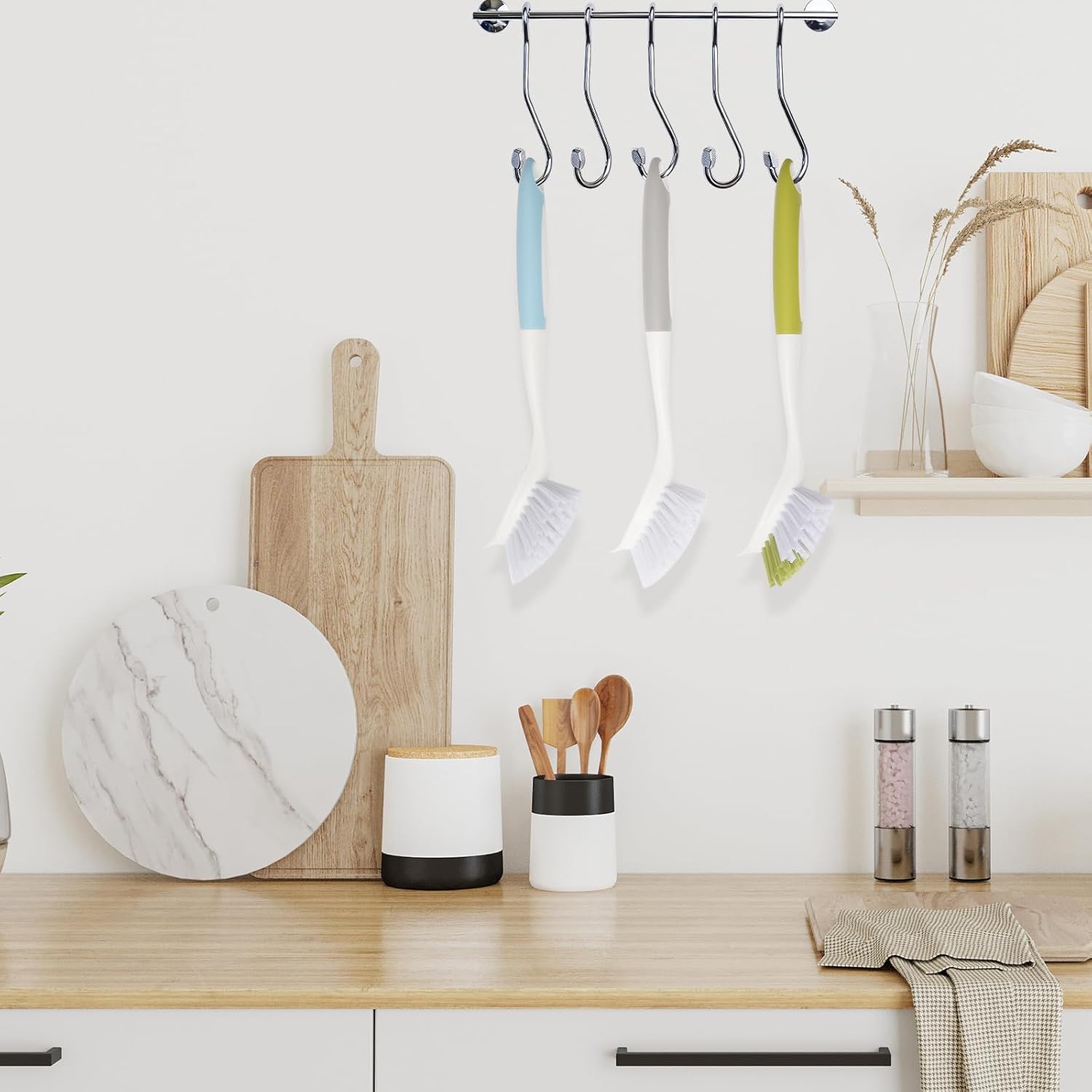 - Ergonomic Non-Slip Handle Dish Brush with Handle: Comfortable, long loop handle provides a secure grip, protects hands from wetness, and allows easy hanging for drying. Effortless heavy-duty scrubbing.