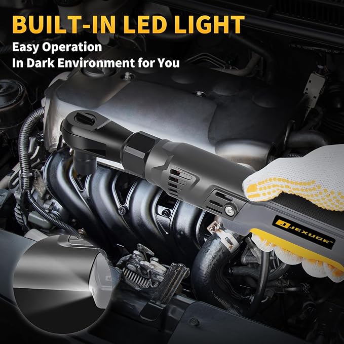 - Superior Ergonomic Design - Battery ratchet Features an ergonomic, non-slip handle with multi-layer rubber for corrosion resistance and comfortable grip. Built-in LED light assists in low-light conditions, enabling precise work in darkness. Easy to operate and quick to master, ideal for seniors, women, and first-time users