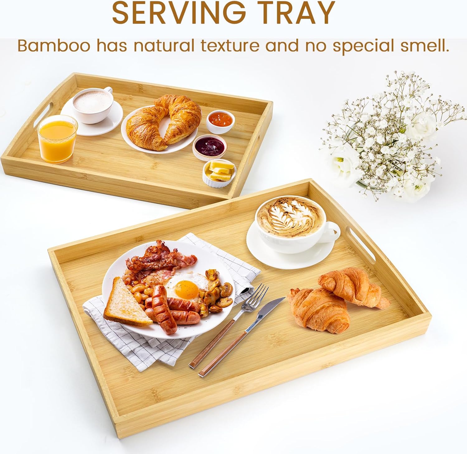 - Decorative Serving Tray : The bamboo tray is more than just for food, use for storage or as a decorative tray. Perfect for breakfast in bed, organizing essentials on your coffee table, kitchen, sofa, or bathroom.The smooth surface is easy to clean with a damp cloth