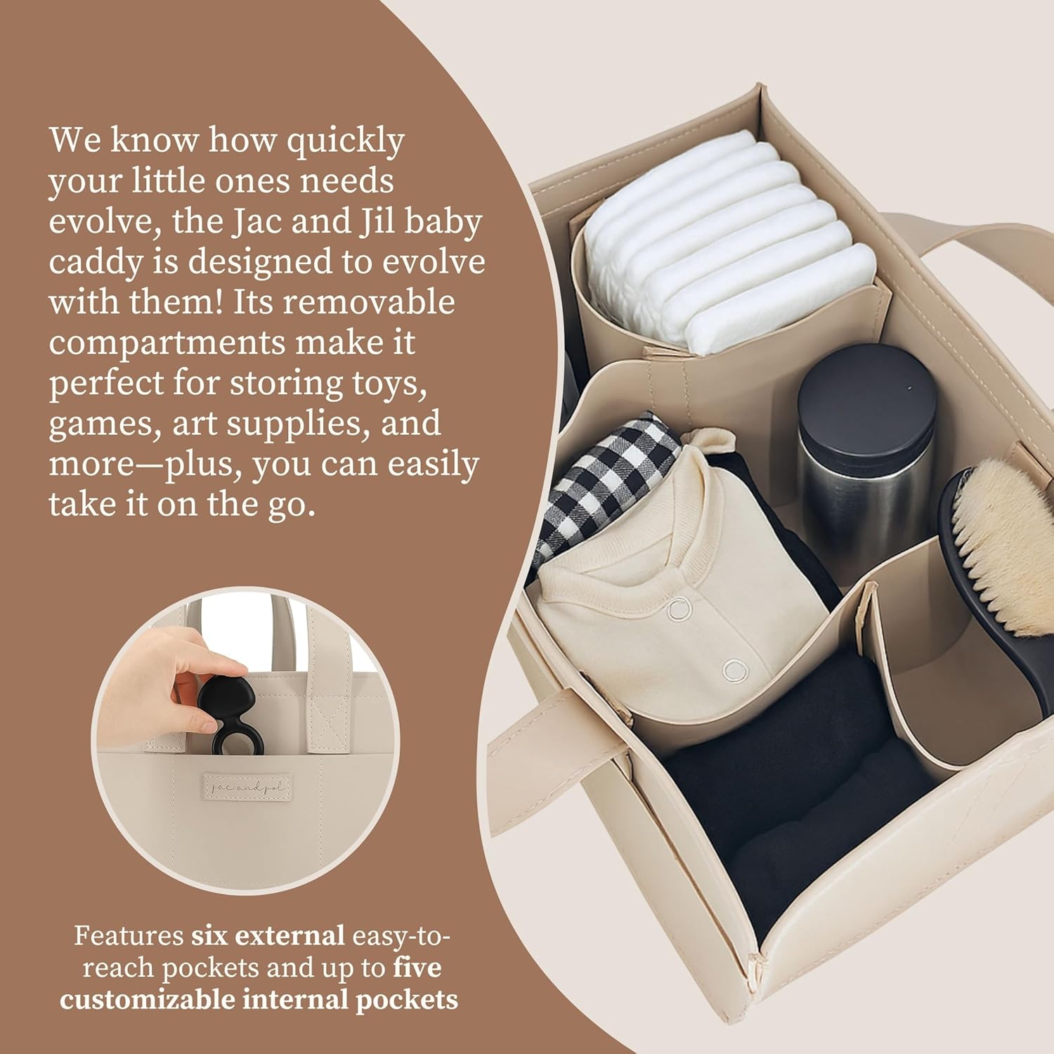 - [PERFECT BABY SHOWER GIFT] – Thoughtful, stylish, and practical, this premium diaper caddy makes an ideal baby shower gift for new and expecting parents. With its elegant vegan leather finish and versatile design, it’s a functional yet beautiful addition to any nursery—sure to impress and be appreciated long after baby arrives.