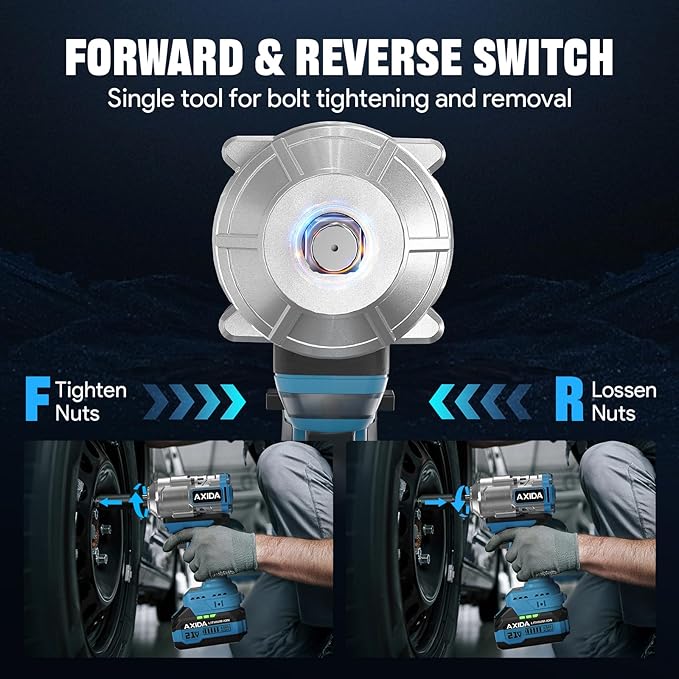 - 【Built-in LED Light & Smooth Trigger】The 1/2 inch Cordless Impact Wrench comes with an inductive LED light and a smooth electric trigger. When you press the trigger, the inductive system sensitively detects subtle changes in pressure, and the light turns on synchronously as the wrench activates; after releasing the trigger, the light stays on for approximately 20 seconds. This provides clear illumination in low-light work environments such as dark or enclosed spaces, easily solving the visibility challenge of operating in dim areas
