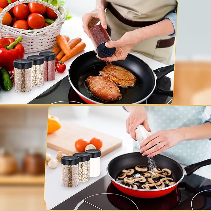- Multi-Purpose: these plastic spice jars with shaker lids are perfect for storing dried spices, salt, peppers, seasonings, herb blends, powder, glitter, bath salts, crafts, etc.widely applied in kitchens, canteens, hotels, restaurants, cake shops and other places