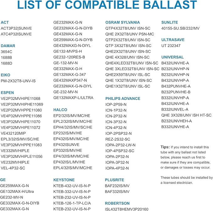 - [Easy to instal]:F17t8 fluorescent bulb 48 inch can be installed with a ballast( Plug & Play) or without a ballast (BALLAST BYPASS), making led tube light 4ft conversion fast, simple and secure.