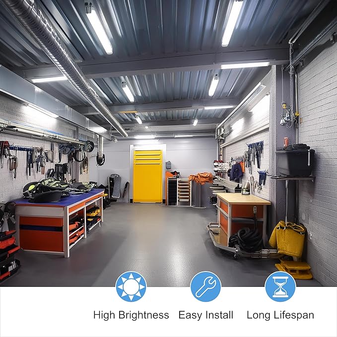 - Special Feature : LED Shop Lights 4ft for Garage, Warehouse, Workbench - Provide 50W of 6500K light, high output, super bright, and >25,000hrs lifespan. No UV or IR radiation. Plug & play linkable fixtures, easy to install. Connect 4-6 lights in series. LED Shop Lights 4ft for Garage, Warehouse, Workbench - Provide 50W of 6500K light, high output, super bright, and >25,000hrs lifespan. No UV or IR radiation. Plug & play li… See more