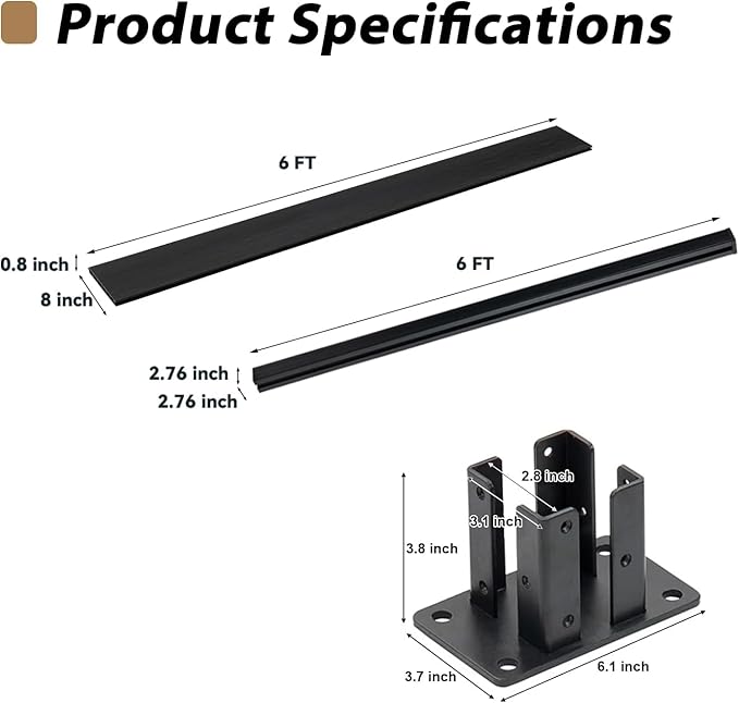 - Standard Dimensions: Installed size: 6ft(H) x 6ft(W). Post dimensions: 6ft(H) x 2.76in(L) x 2.76in(W).