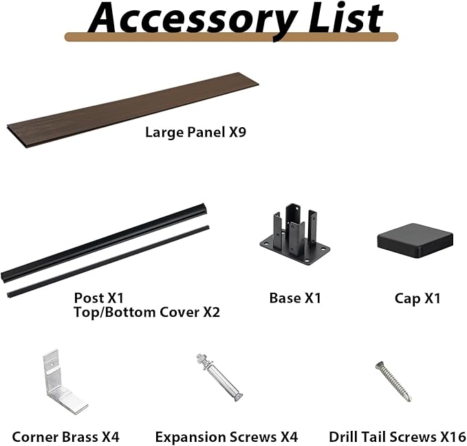 6x6 FT Wood Composite Privacy Fence Panel, Outdoor AC Unit Cover, Pool Equipment Screen, Trash Can Barrier | Weatherproof, Easy Installation, Durable Composite Fencing (Brown with 1 Post)