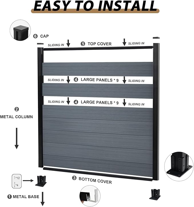 - Easy Installation & Expandable: The composite fence is designed for quick assembly and expansion. Posts feature three slots for straight, right-angle, or T-shaped configurations.