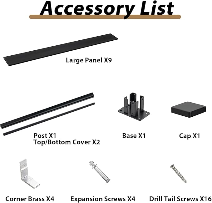 6x6 FT Wood Composite Privacy Fence Panel,Outdoor AC Unit Cover, Pool Equipment Screen, Trash Can Barrier | Weatherproof, Easy Installation, Durable Composite Fencing (Black with 1 Post)