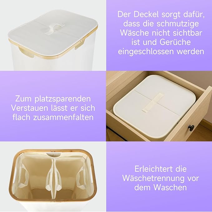 - Dirty Clothes Basket with Lid: Convenient flip lid design hides clothes and odors, protects your clothes from dust, and makes your living room look tidier