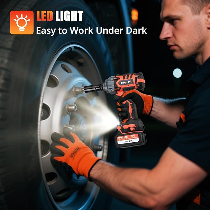- BRUSHLESS MOTOR: Deyisha cordless impact wrench utilizes an upgraded 21V brushless motor with a maximum torque of 1500N.m (1100 ft-lbs), making it easy to handle demanding tasks like truck tire removal, car repair, and steel structure assembly.