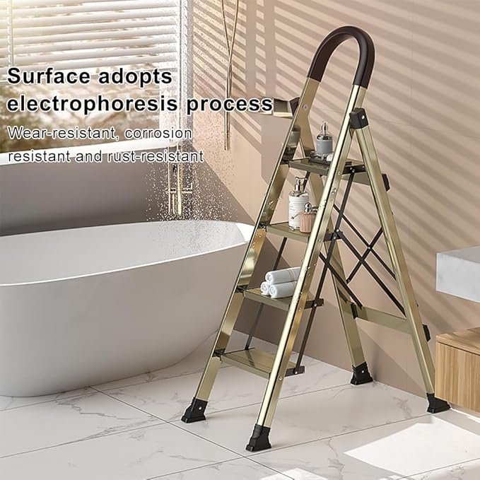 - Why Choose This Step Ladder? Because functionality should never sacrifice style. This is more than a tool—it’s a design-forward essential for elevated living.Crafted for discerning homeowners, this 4-step folding ladder blends robust construction with sleek aesthetics. Whether you're reaching high shelves, replacing bulbs, or tackling weekend projects, it provides unwavering support with refined style.