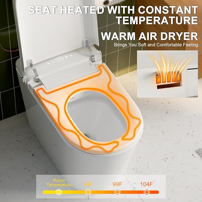 Smart Toilet with Built-in Tank and Air Boost Pump, Powerful Flush, Auto Open/Close Lid, ADA Height Heat Seat, Smart Bidet Toilet with Instant Warm Water Cleaning Foam Dispenser (White)