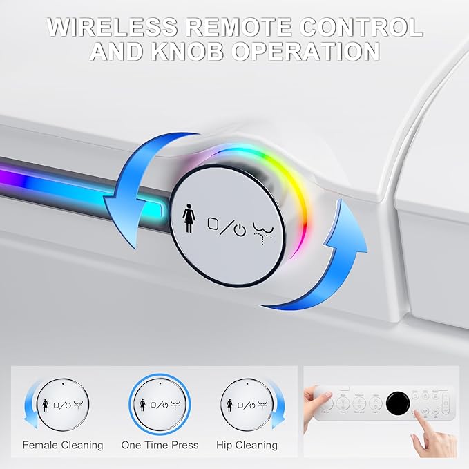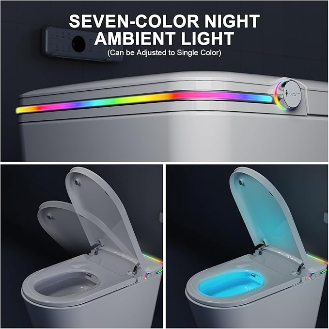 - Convenient and Precise Operation: The foot-kick sensor enables precise activation for flushing and lid opening, avoiding accidental triggers. Dual control methods, including a remote control and a side knob, ensure ease of use. The LED night light provides clear guidance for nighttime use.