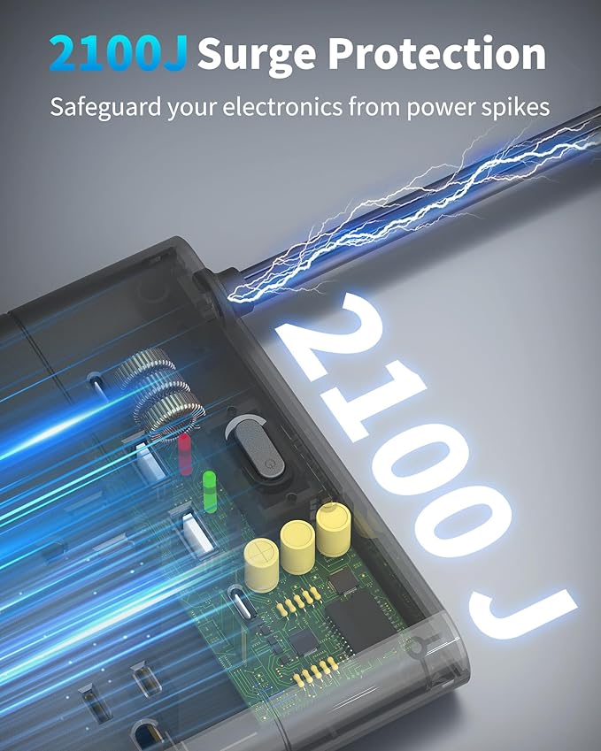- 【Multiple Security Protection】 This power strips with surge protection is rated at 2100 joules. With built-in overload, grounding, overcurrent, overheating, and overvoltage protections, the fireproof enclosure ensures safe operation in any setting, from conference rooms to entertainment centers.