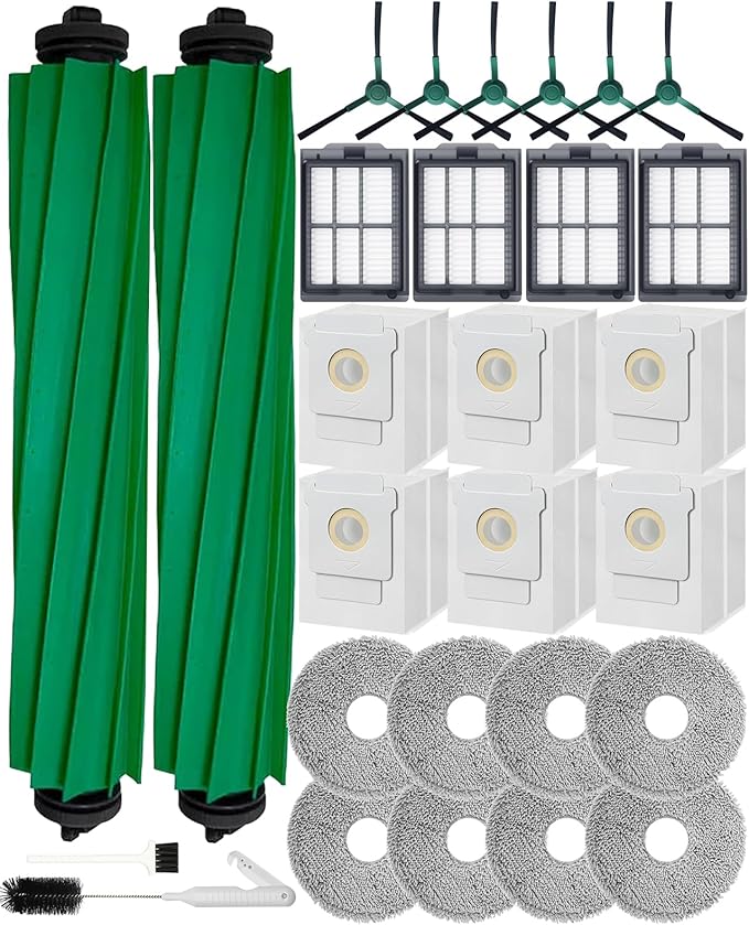 Yivy 28PCS Accessories Kit for iRobot Roomba Plus 405/505 Combo Robot Vacuum Cleaner, Parts Contents 2 Roller Brushes, 6 Side Brushes, 6 Dust Bags, 4 HEPA Filters, 8 Mop Pads, 1 Cleaning Brush