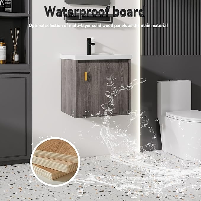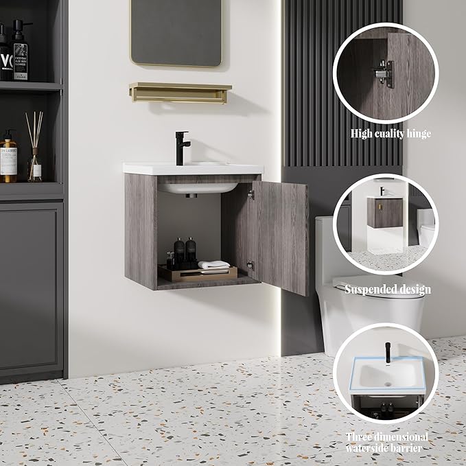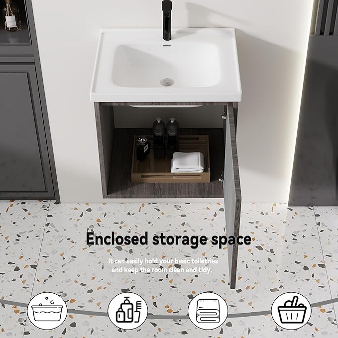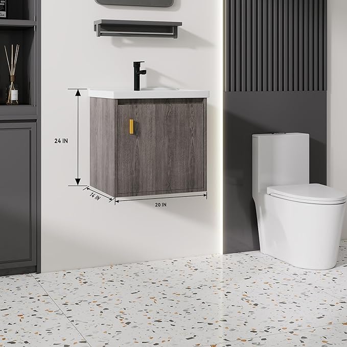 - 【Modern and Functional Design】- The Albriya 20" Bathroom Vanity in greywalnut with Floating Vanity Technic brings a modern and functional design to your bathroom, making it an ideal choice for a bathroom vanity cabinet. Its sleek and contemporary look adds a touch of elegance to any bathroom or vanity décor.