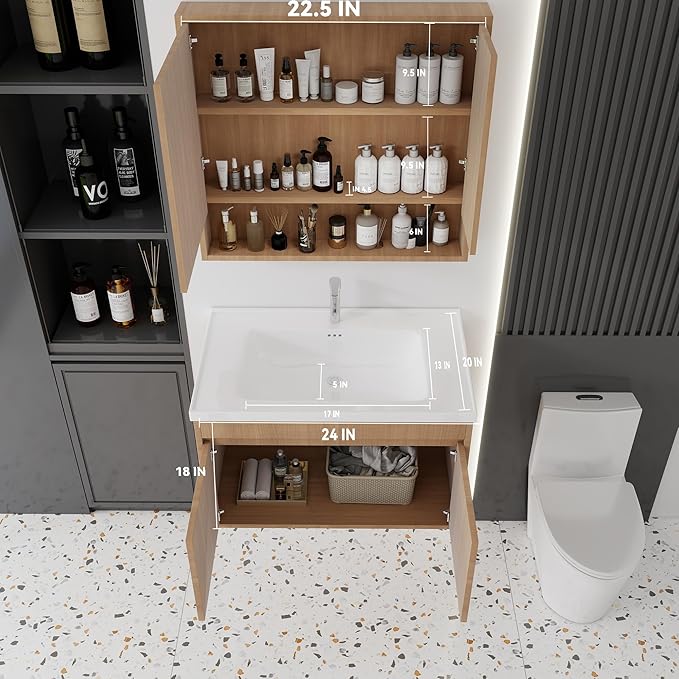 - 【Simple Installation】- The walnut vanity comes pre-assembled out of the box, making the installation process quick and easy. Only minor finishing up assembly is required, which can be done in approximately 20 minutes. The package includes a step-by-step, easy-to-follow clear instruction guide, along with all the necessary hardware. The spacious under-sink cabinet provides easy access for plumbing installation.