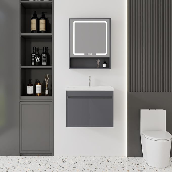 - 【Modern and Functional Design】- The Albriya 24" Bathroom Vanity in grey with Floating Vanity Technic brings a modern and functional design to your bathroom, making it an ideal choice for a bathroom vanity cabinet. Its sleek and contemporary look adds a touch of elegance to any bathroom or vanity décor.