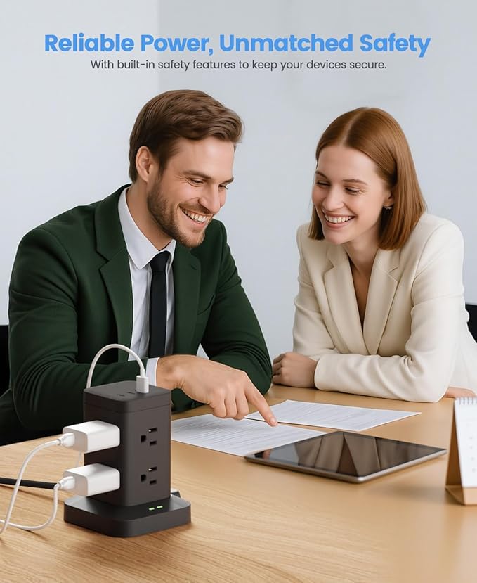- Safety & Durable Surge Protector Tower: With 1800J Surge Protector prowides overload protection, short-circuit protection, and over-current protection, ensures your electronics stay safe. the extension cords not only long enough but also heavy duty to enhance safety and durability.