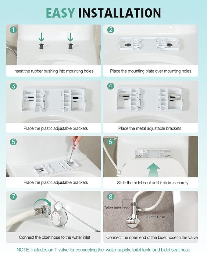 - Easy Installation: Our bidet seat engineered to fit most elongated toilets (20"L x 14.75"W x 2.4"H), delivers a seamless upgrade. Enjoy a hassle-free, easy installation in minutes with all parts included—no plumber needed