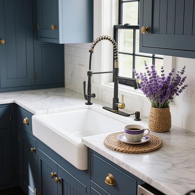 - ENJOY GREAT FUNCTIONALITY: With a one-function kitchen faucet sprayer and a separate pot filler spout, this pull down faucet allows you to handle all types of tasks. The spray head and stream spout can swivel around 360 degrees for full sink access, and the pre-rinse faucet ensures high pressure while still saving on water.