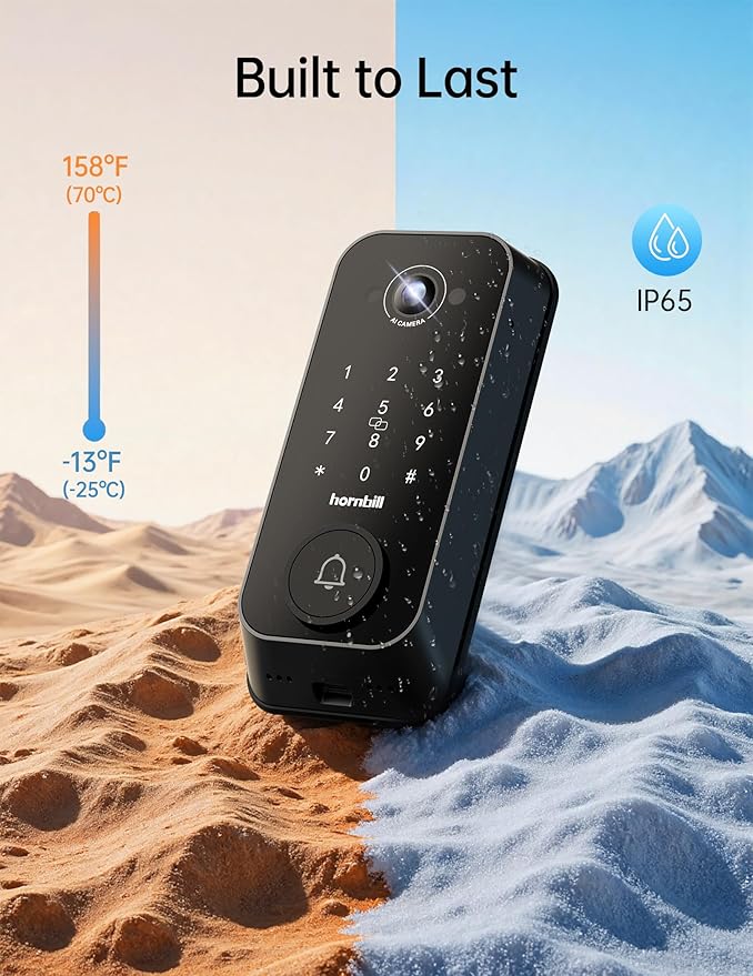 - Special Feature : Built-in Wi-Fi, 2K HD, Doorbell, Two-Way Audio, Rechargeable Batteries, PIR Motion, Night Vision, App Remote Control, Fingerprint, Auto Lock, IP65 Weatherproof Built-in Wi-Fi, 2K HD, Doorbell, Two-Way Audio, Rechargeable Batteries, PIR Motion, Night Vision, App Remote Control, Fingerprint, Auto Lock, IP65 Weatherproof