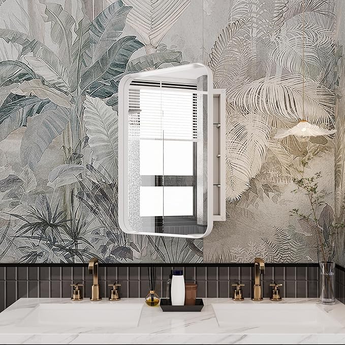 - 16x24 Inch Versatile Installation: With 16x24inch perfect size , this medicine cabinet supports both recessed and surface mount options, seamlessly fitting into bathroom wall niches, above sinks, or even RV/restroom setups.The cabinet can achieve 180 ° reverse installation, suitable for any living space.The specific cutout size is not equal to the mirror size, please measure the cabinet size before selecting a recessed installation.