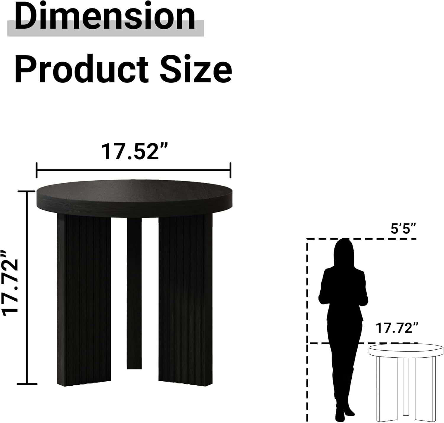 - Easy to Move: With smooth edges and a rounded shape, we have put a keen focus on safety, ensuring your family moments are free from the worry of sharp corners. The small round side table for small spaces have a low tabletop height, which makes it easy to carry and move. Measuring 17.52" Lx 17.72"H. It can be easily moved by one or two people.