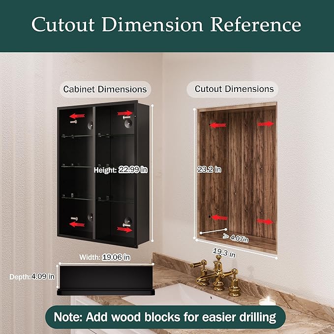 - Dual Mounting Options – Versatile design allows for both surface and recessed wall mounting, providing flexibility in how you display and install this medicine cabinet.
