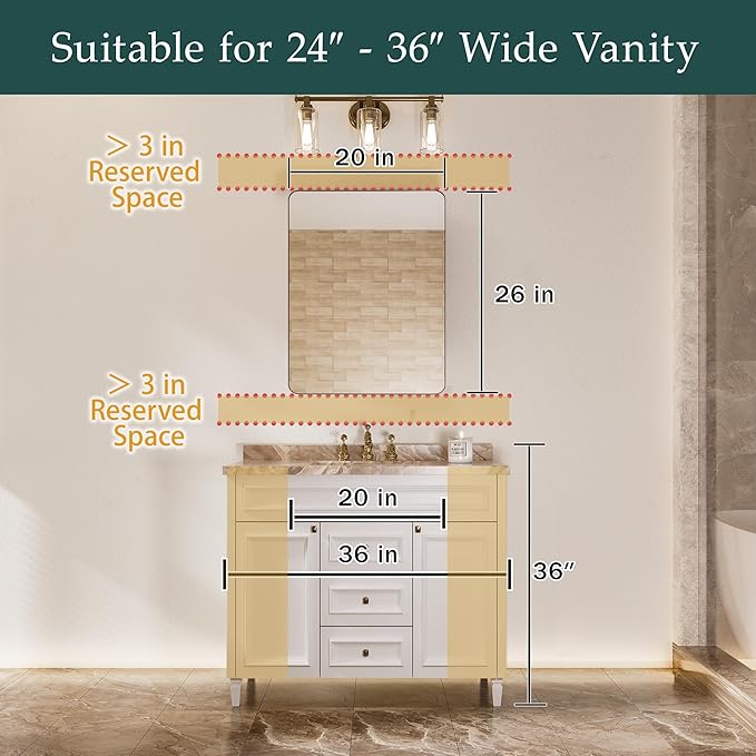 - standard Design – The 20x26 inch size makes it ideal for small bathrooms or spaces where maximizing storage is a priority without sacrificing style.
