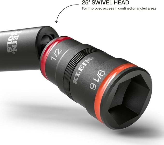 Klein Tools 32984 Impact Flip Socket Set with Swivel Adapter, 6-Piece, 25-Degree Swivel Head, SAE Hex Sizes, Nut Driving, Impact-Rated