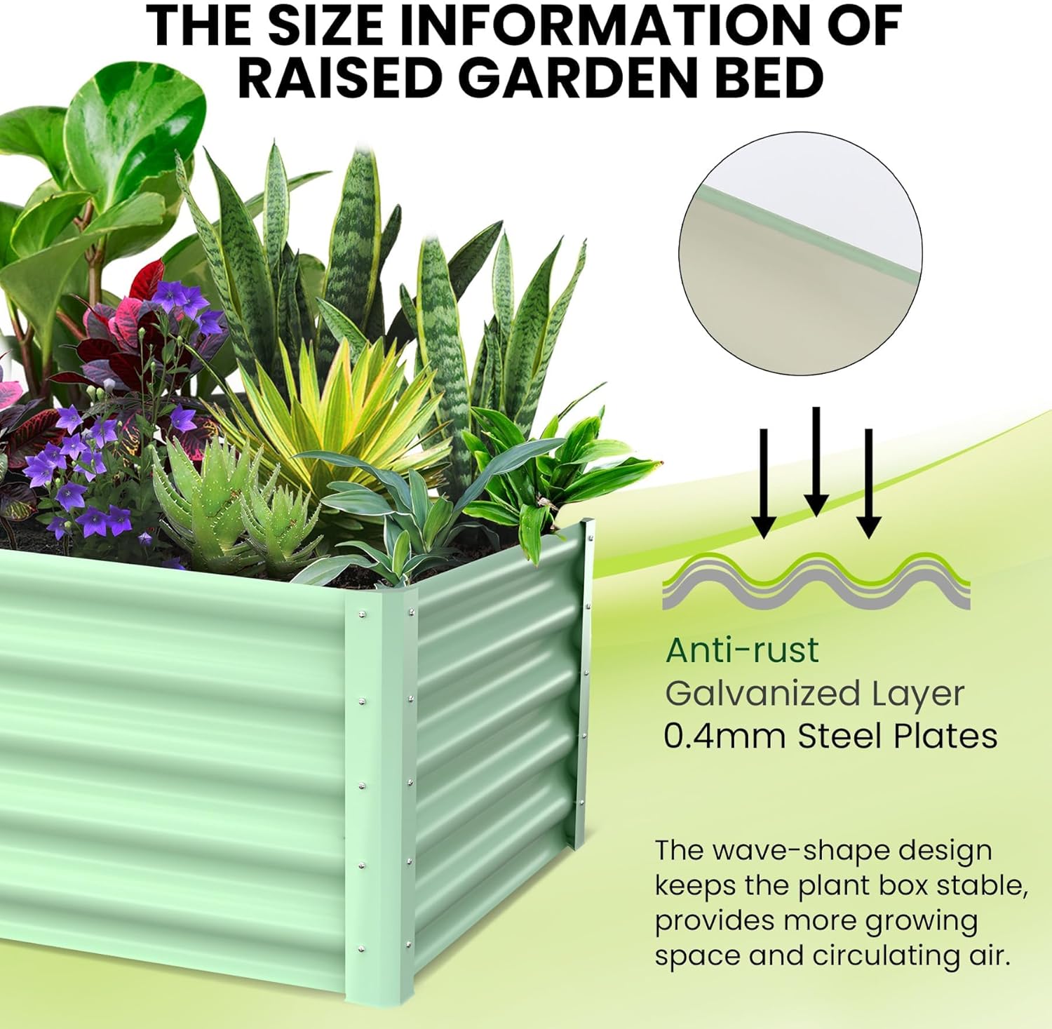 Large Outdoor Planter Boxes Kit Set of 2, 6x3x1.5ft Galvanized Raised Bed Planter with Open-Ended Base Design, Elevated for Outdoor Plants, Durable Raised Bed for Gardening,Green