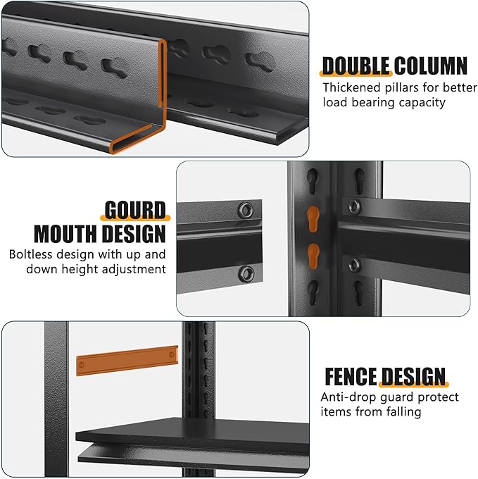 - 【All-Steel Shelves with Reinforced Bracing for Heavy-Duty Loads】Forget warped, cracked, or moisture-damaged wood! Constructed entirely of robust steel with reinforced bottom bracing, these shelves handle significantly heavier loads with ease. The under-shelf bracing provides critical extra support, maintaining structural integrity for years, especially in damp environments like garages where wood fails.