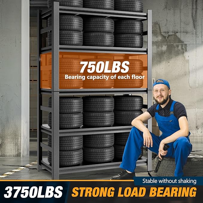 - 【Heavy-Duty Industrial Construction】Crafted with ultra-durable steel and reinforced cross beams, this 87''H commercial shelving unit delivers unmatched strength for demanding storage needs. Each shelf holds up to 750 lbs, ensuring reliable support for heavy tools, equipment, bulk supplies, or seasonal items. Perfect for warehouses, garages, and industrial settings.