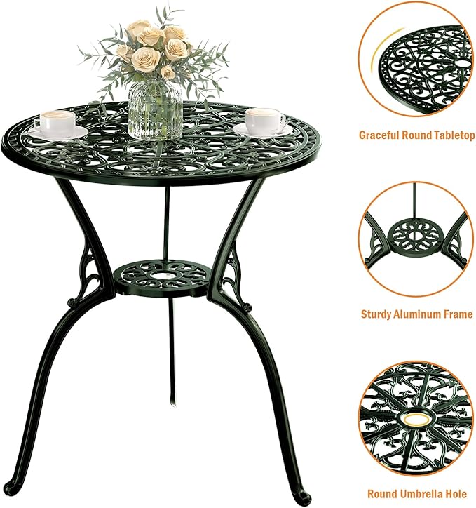 - 【Durable Cast Aluminum】Made of anti-rust, weather-resistant cast aluminum, making bistro set perfect for long-term outdoor use in any climate