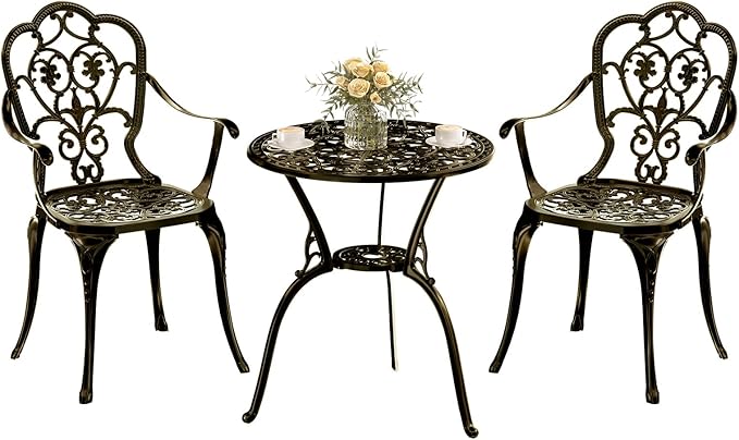 - 【Durable Cast Aluminum】Made of anti-rust, weather-resistant cast aluminum, making bistro set perfect for long-term outdoor use in any climate
