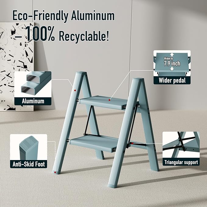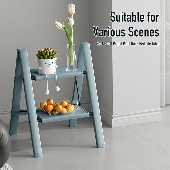 2 Step Ladder,Aluminum Folding Step Stool for Adults,Step Ladder with Wide Anti-Slip Pedal,330 lbs Capacity for Home,Office,Kitchen,Library(Blue)