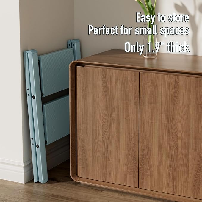- 【Ladder Dimensions】 Open Dimensions: 24 x 18.1 x 20.8 inches.Folded Dimensions: 25.9 x 18.1 x 1.9 inches.Top Step Height: 17.7 inches.This design ensures you can easily reach the desired height when in use.