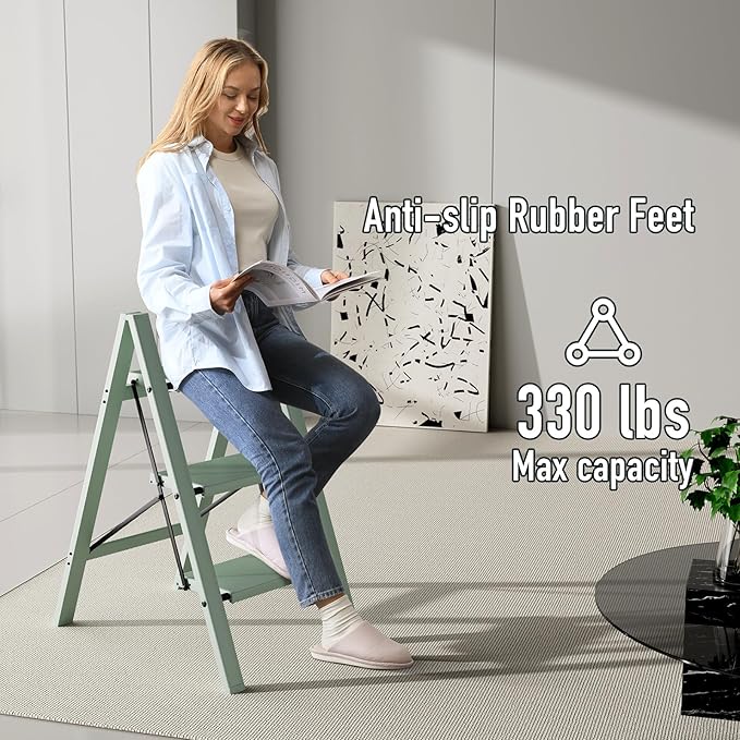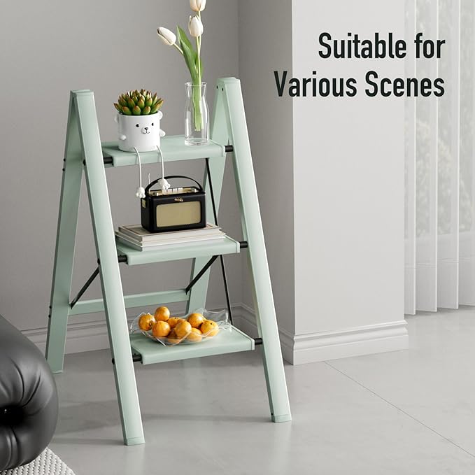 3 Step Ladder,Aluminum Folding Step Stool for Adults,Step Ladder with Wide Anti-Slip Pedal,330 lbs Capacity for Home,Office,Kitchen,Library(Green)